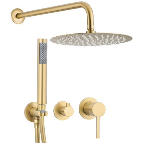 Ducha empotrada monomando redonda con pulsadores a pared dorado cepillado – Serie Navia