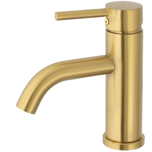 Grifo de lavabo monomando redondo caño recto dorado cepillado – Serie Palancia