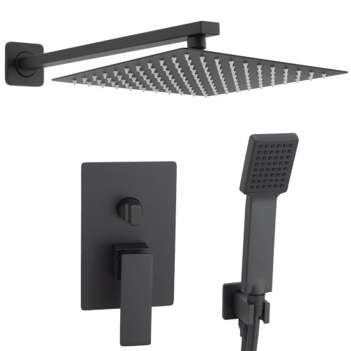 Ducha empotrada monomando a pared cuadrada negro mate – Serie Eresma