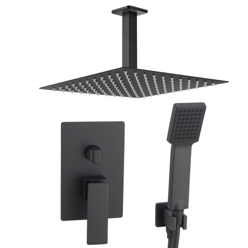 Ducha empotrada monomando a techo cuadrada negro mate – Serie Tajo