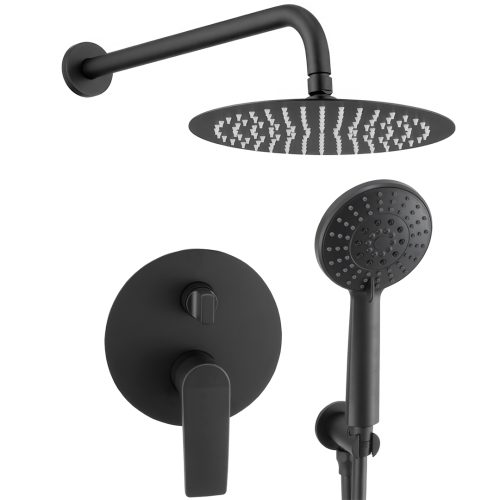 Ducha empotrada monomando a pared redonda negro mate – Serie Jucar