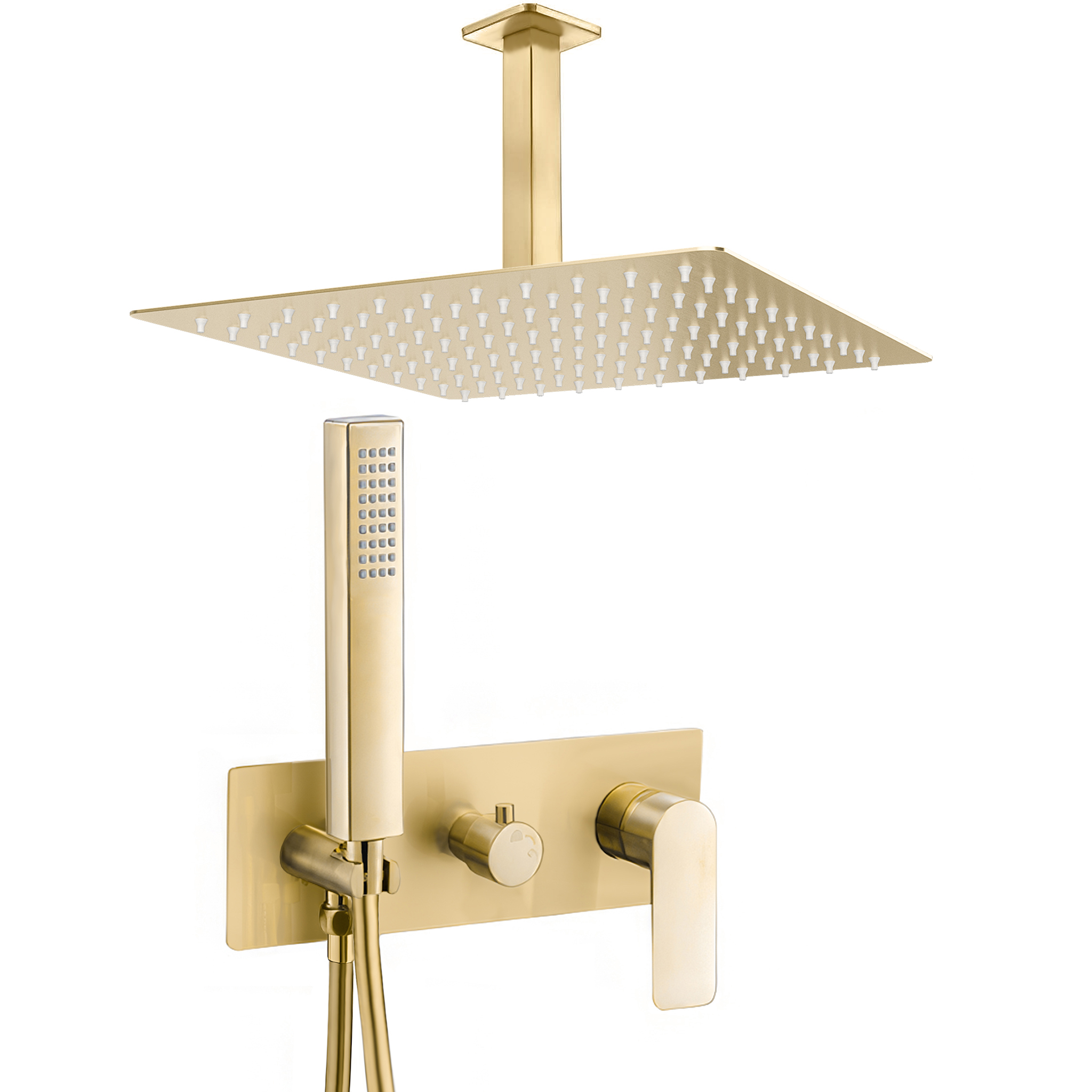 Ducha empotrada monomando cuadrada a techo oro mate con protección PVD – Serie Miño