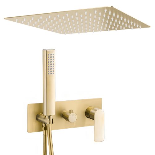 Ducha encastrada monomando a ras techo cuadrada oro mate con protección PVD – Serie Miño
