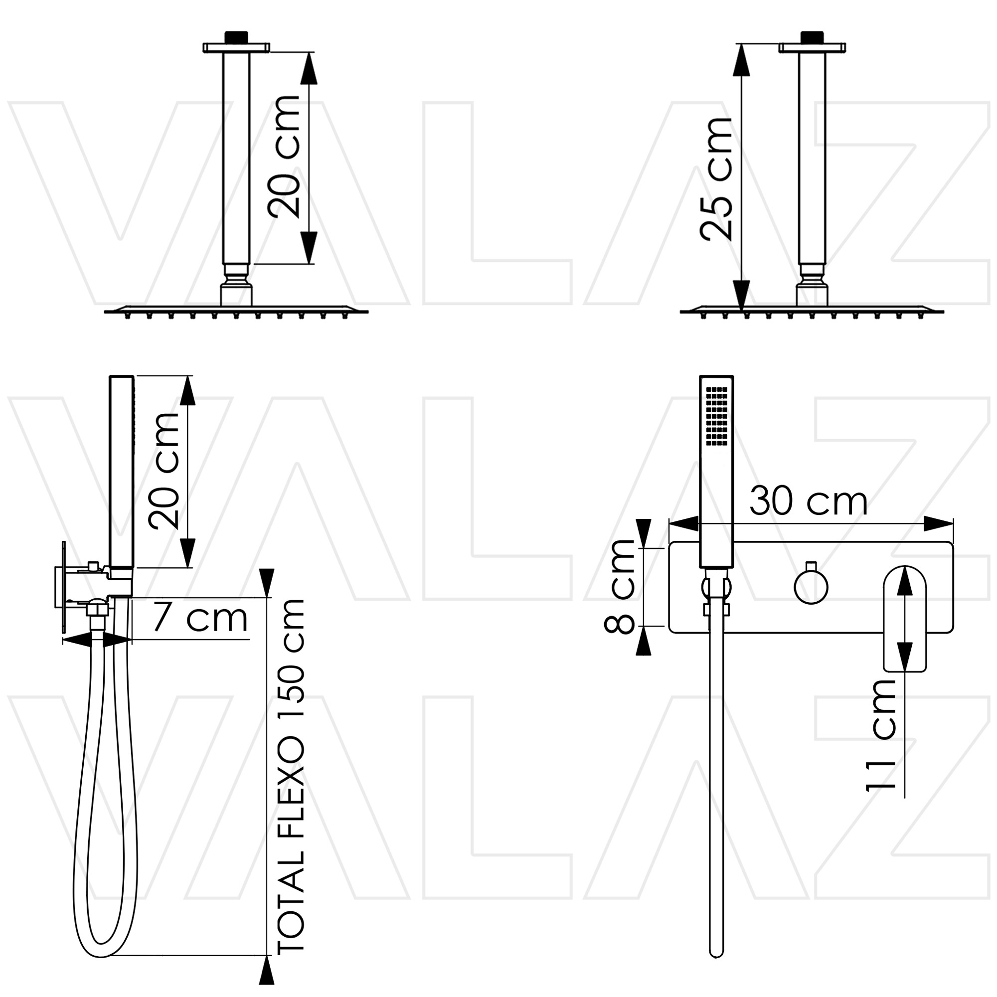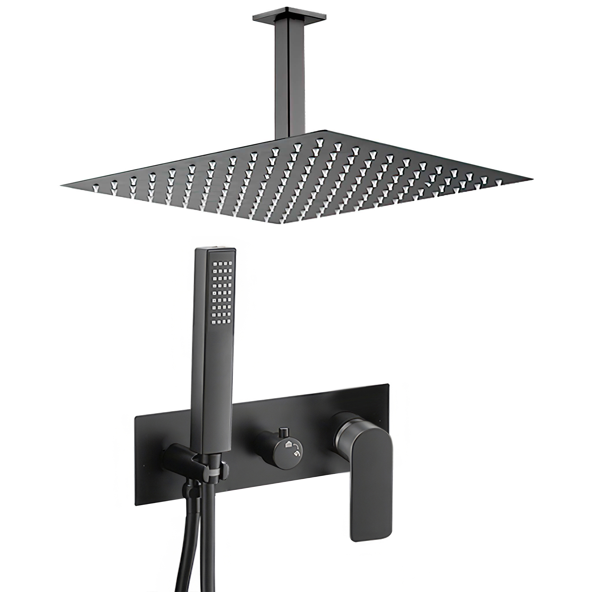 Ducha empotrada monomando cuadrada a techo negro mate – Serie Miño