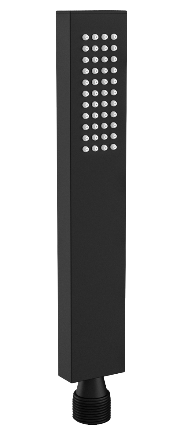 Alcachofa de mano de diseño cuadrado con acabado negro mate, ideal para baños modernos y minimalistas.
