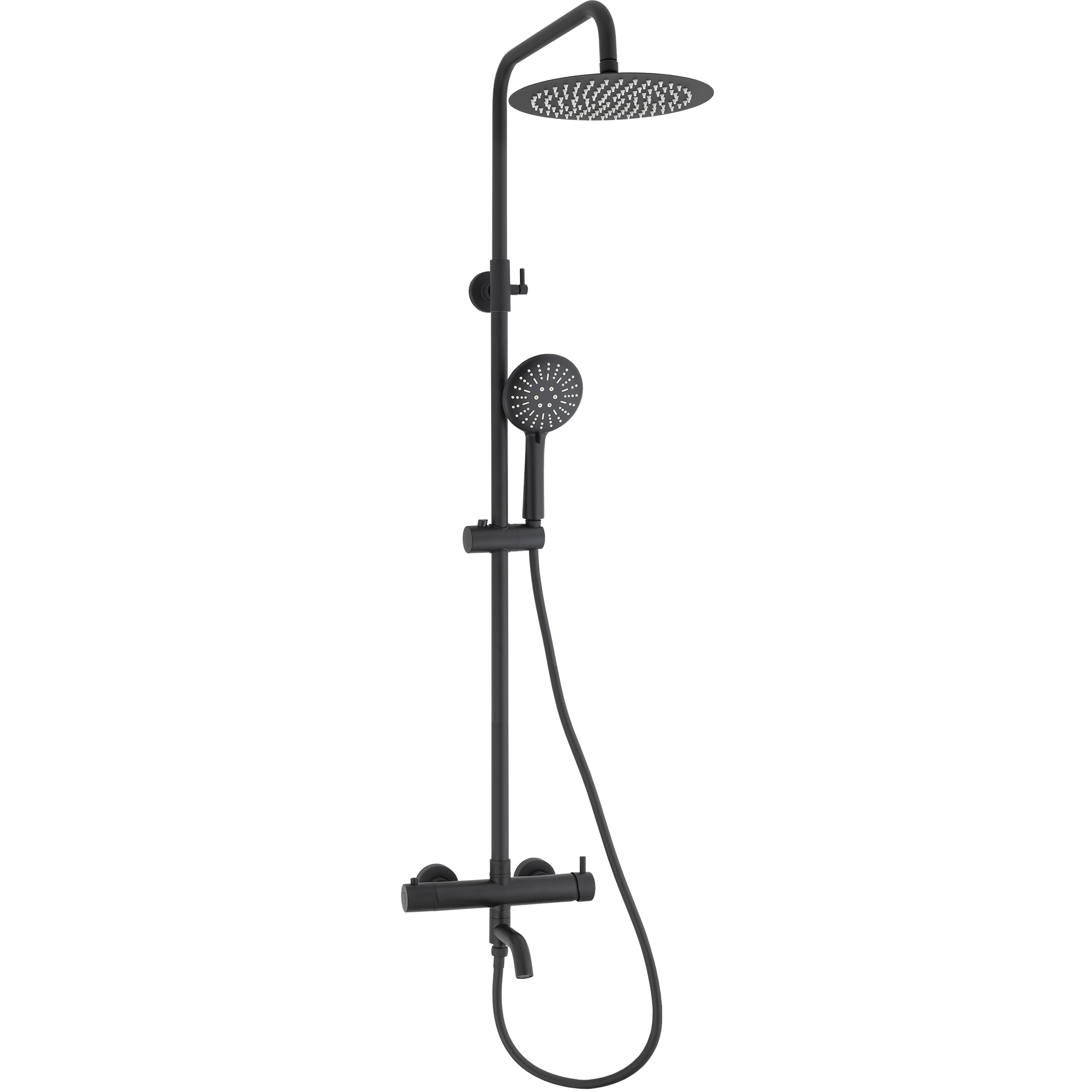 Barra de ducha/bañera monomando redonda ajustable hasta 150CM negro mate – Serie Jabalón