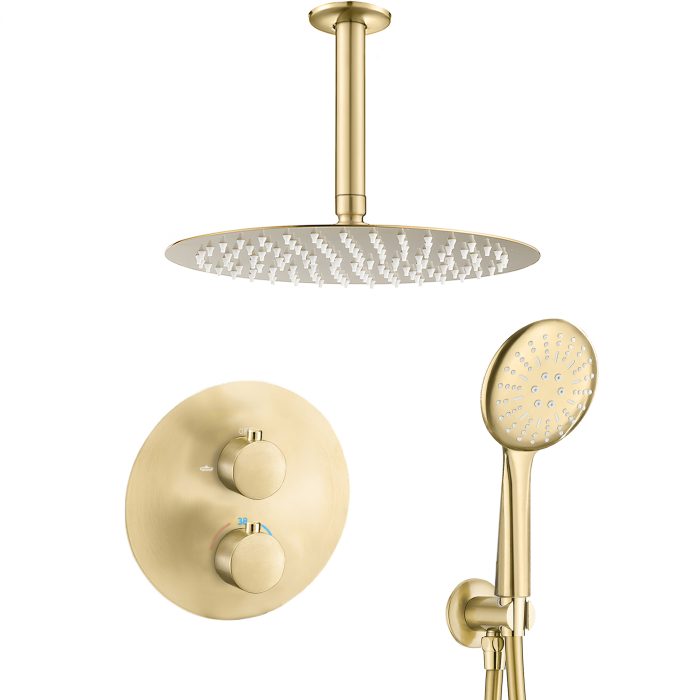 Ducha empotrada termostática techo redonda dorado cepillado – Serie Cabriel