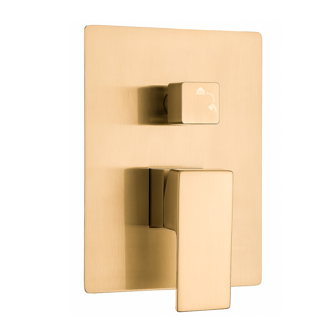 Ducha encastrada monomando a ras techo cuadrada dorado cepillado – Serie Eresma