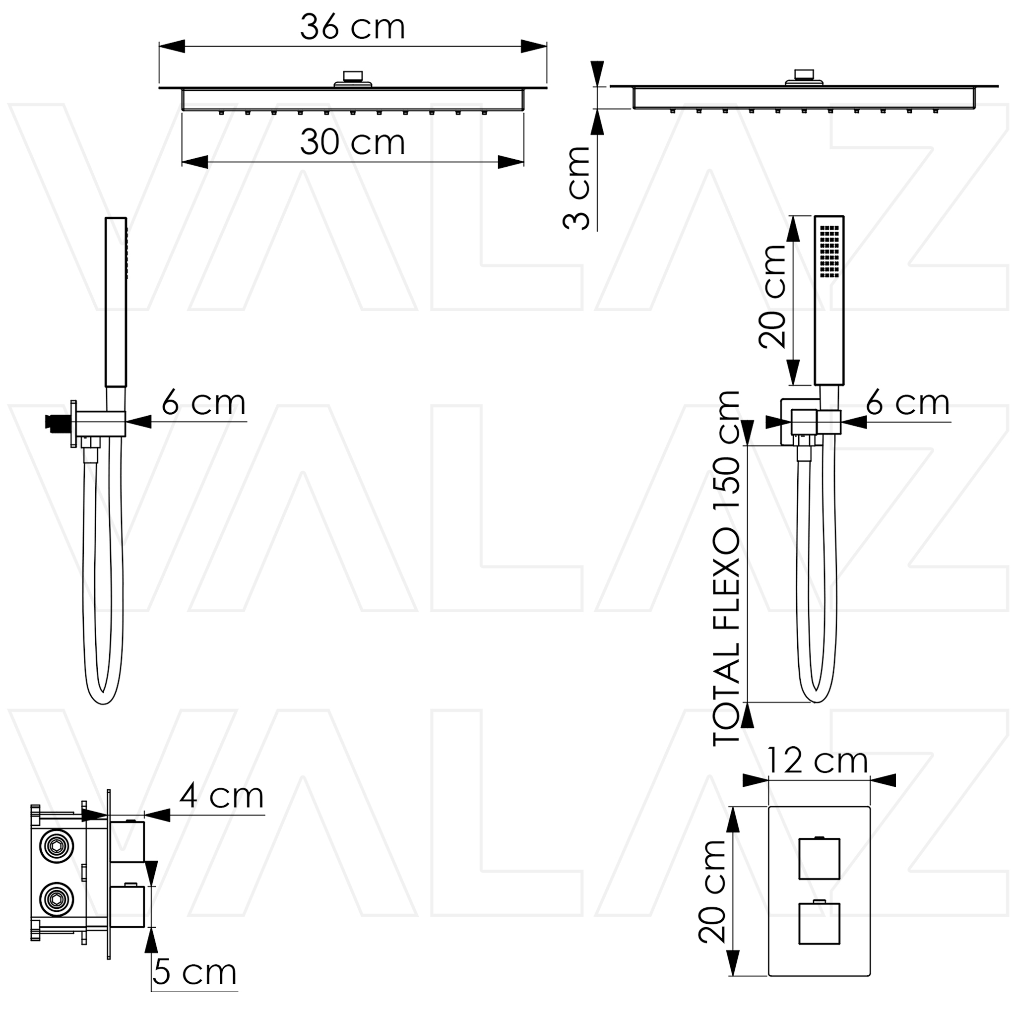 Ducha encastrada termostática a ras techo cuadrada cromada – Serie Tajo