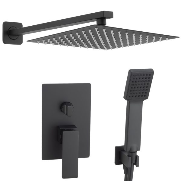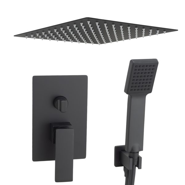 Ducha empotrada monomando a pared cuadrada negro mate – Serie Limia