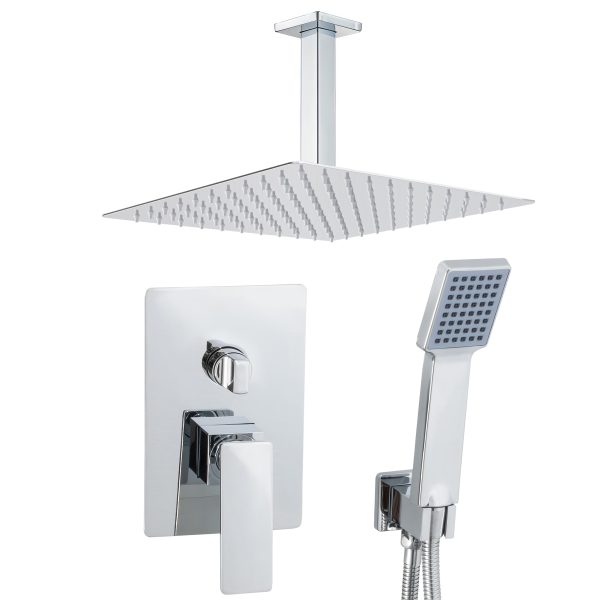 Ducha empotrada monomando a techo cuadrada cromado – Serie Limia