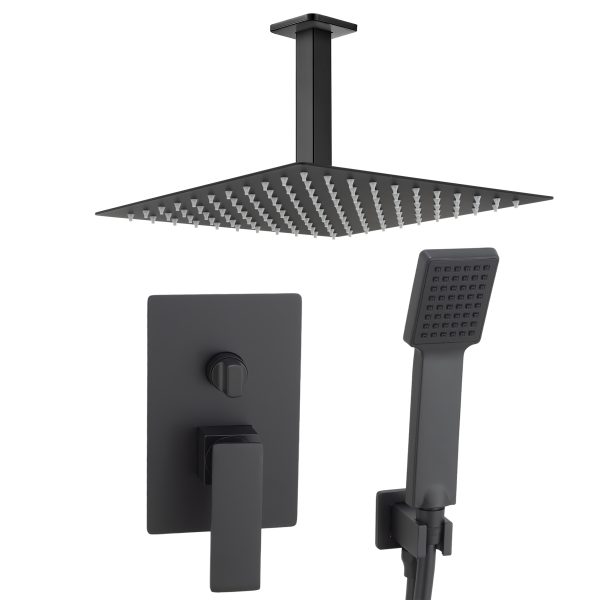 Ducha empotrada monomando a techo cuadrada negro mate – Serie Limia