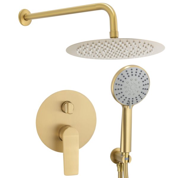 Ducha empotrada redonda a pared en oro mate con protección PVD – Serie Vaca