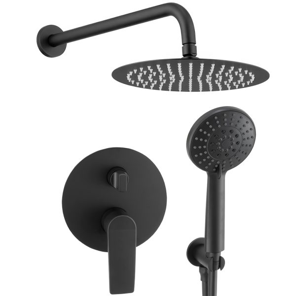 Ducha empotrada monomando a pared redonda negro mate – Serie Vaca